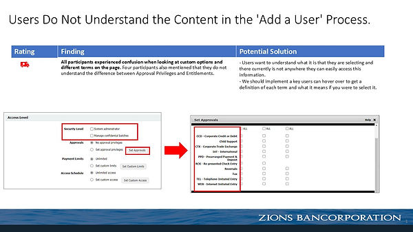 Recommendations informed a redesign of the Add a User workflow, improving clarity around roles and permissions.
